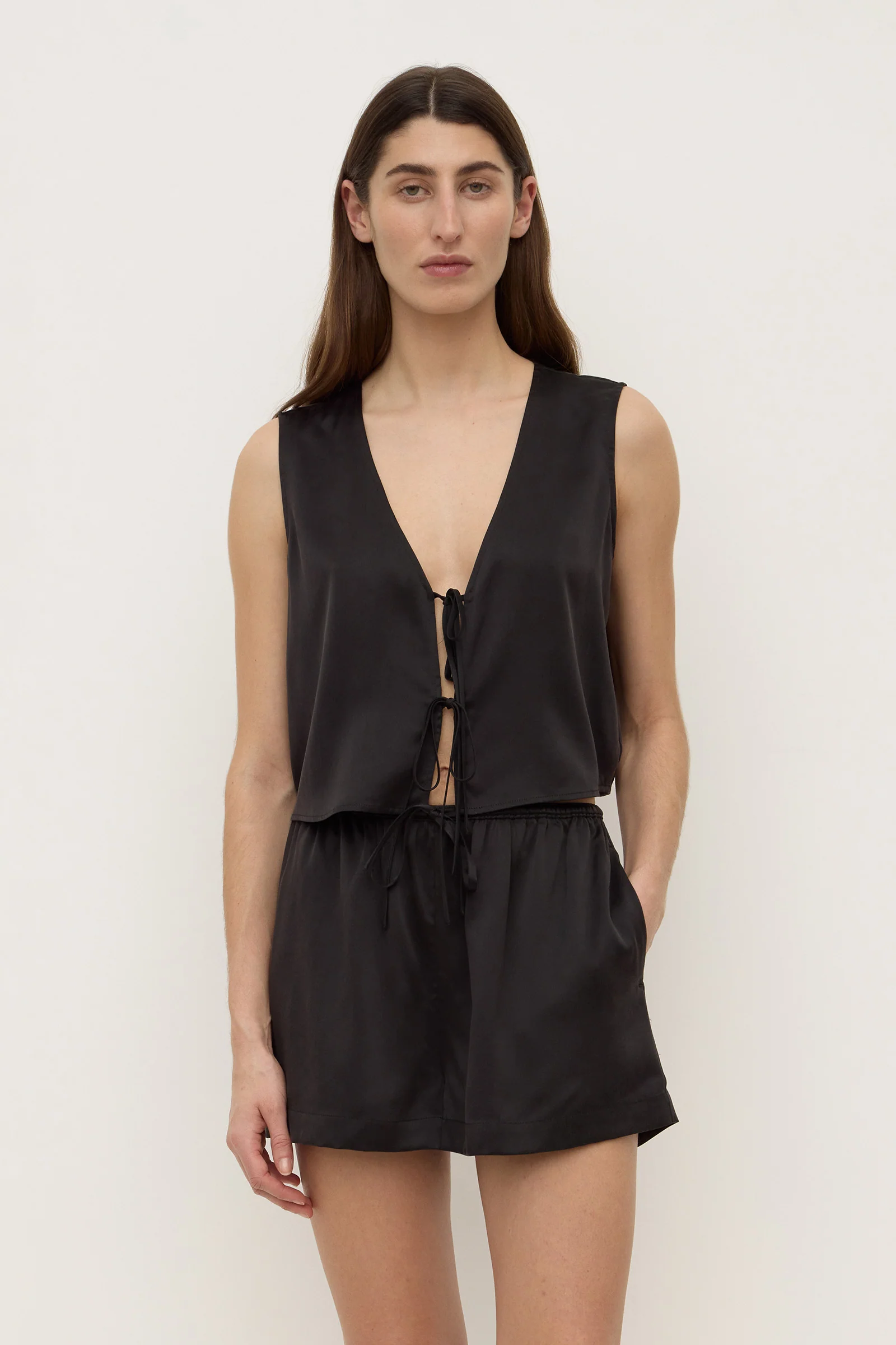 Beal Silk Tie Front Top